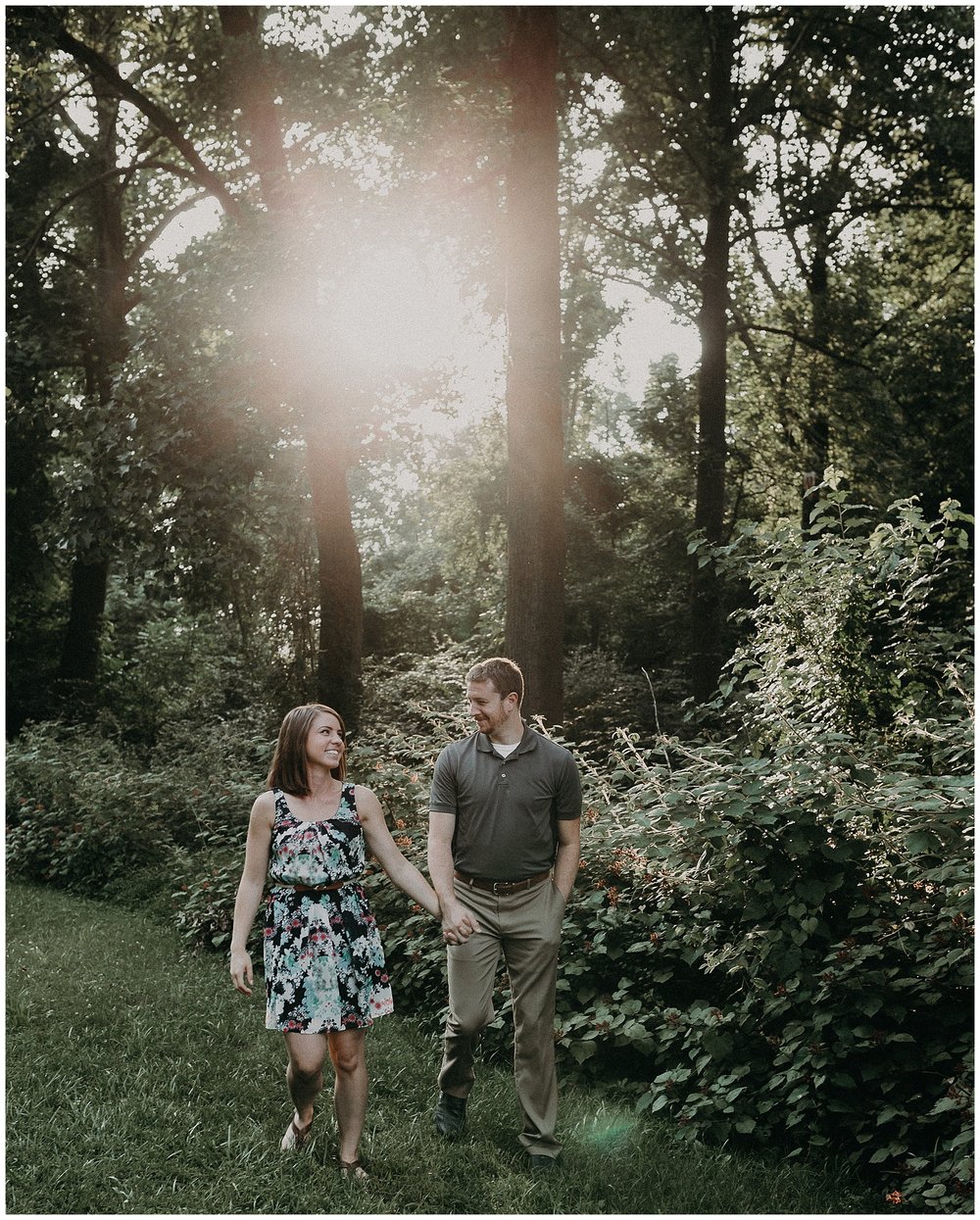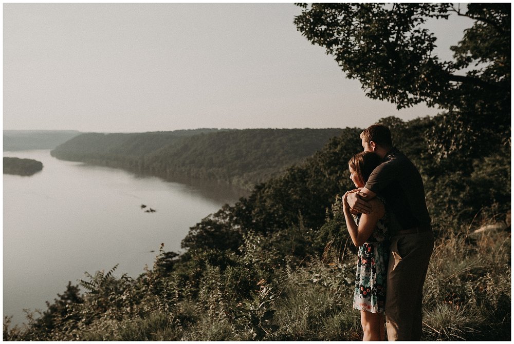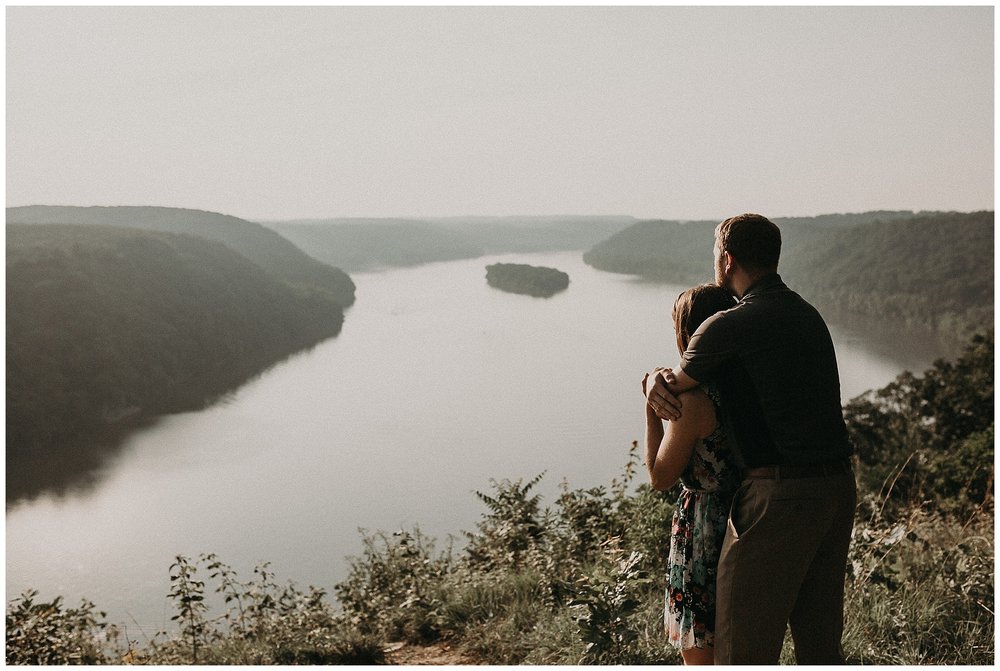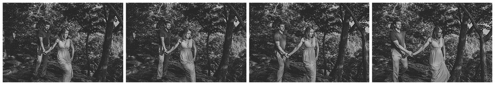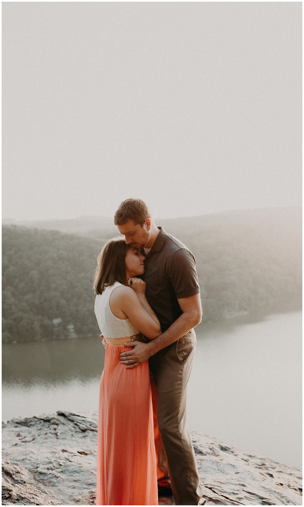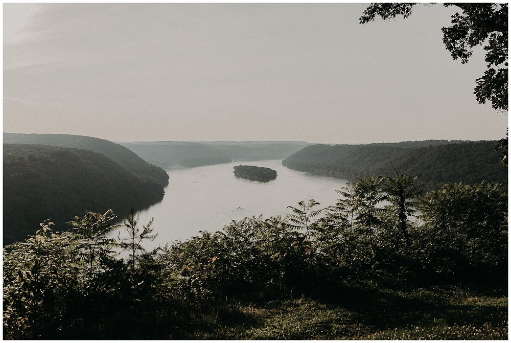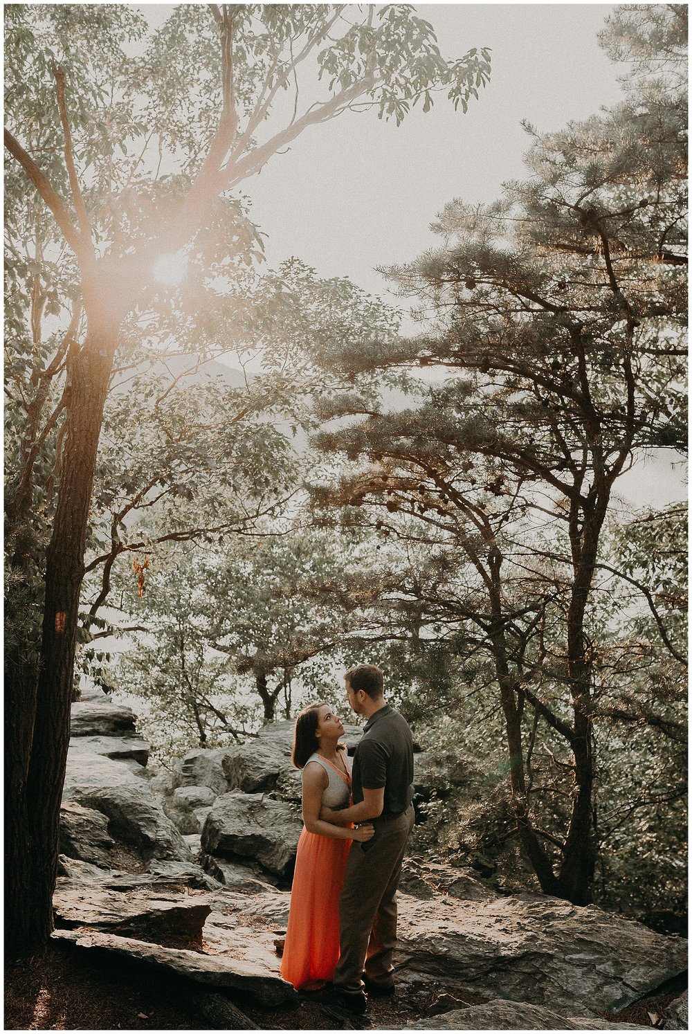 As soon as we pulled up for our session the sun was coming through the trees at just the right angle for some sun flare. *praise hands* I quickly learned that Colin is a man of few words and the way he makes Cat feel safe is through his embrace and the way he leads her and watches out for her. And I made sure to let him do plenty of that. Once we were done frolicking amongst the green we decided to explore a little further because within the first 15-20 minutes we hadn’t gotten more than a few feet from our cars. Our explorations led us over to a spot where the threes thinned and you could take in the view of the Susquehanna River. I knew there was more to Pinnacle than just that little clearing of trees so after a few more photos I asked Cat to change into her second dress. Once she was back we were ready for round two…and the big reveal.