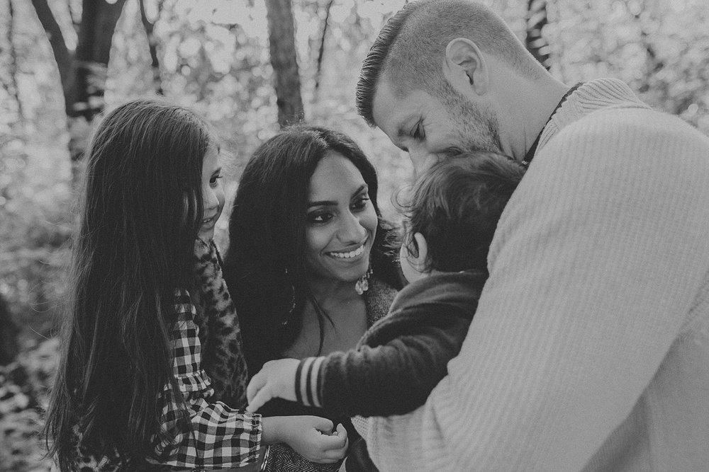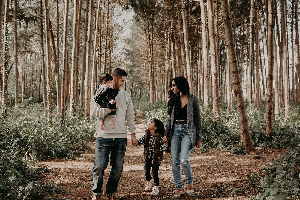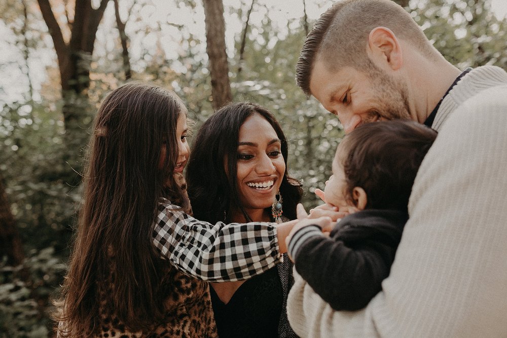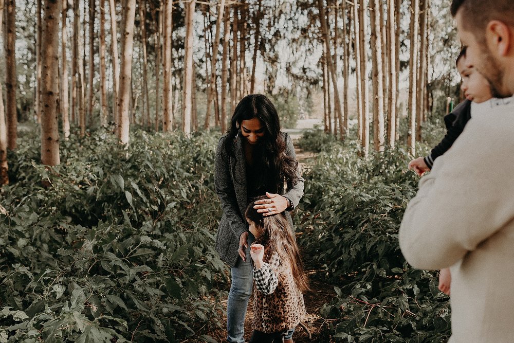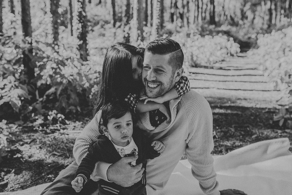 Thankfully the day of their session ended up being a super warm day after a whole streak of cold and miserable weather. We had so much fun with the kids, getting them to laugh and giggle. We explored the wooded area counting berries, finding caterpillars, and having daddy-daughter races. It was perfect. A perfect day. A perfect session. The perfect family.