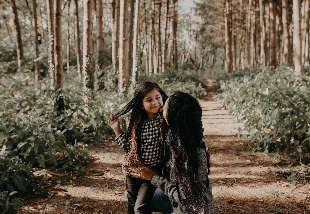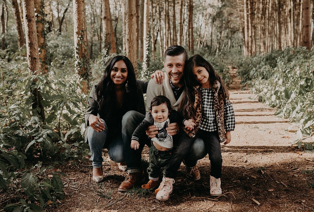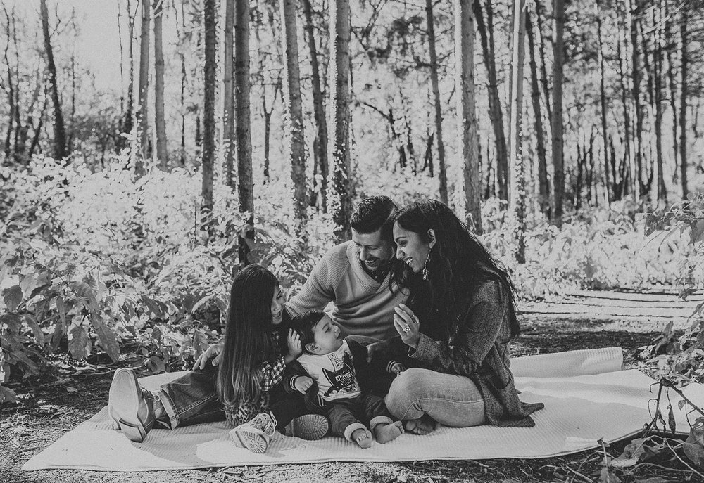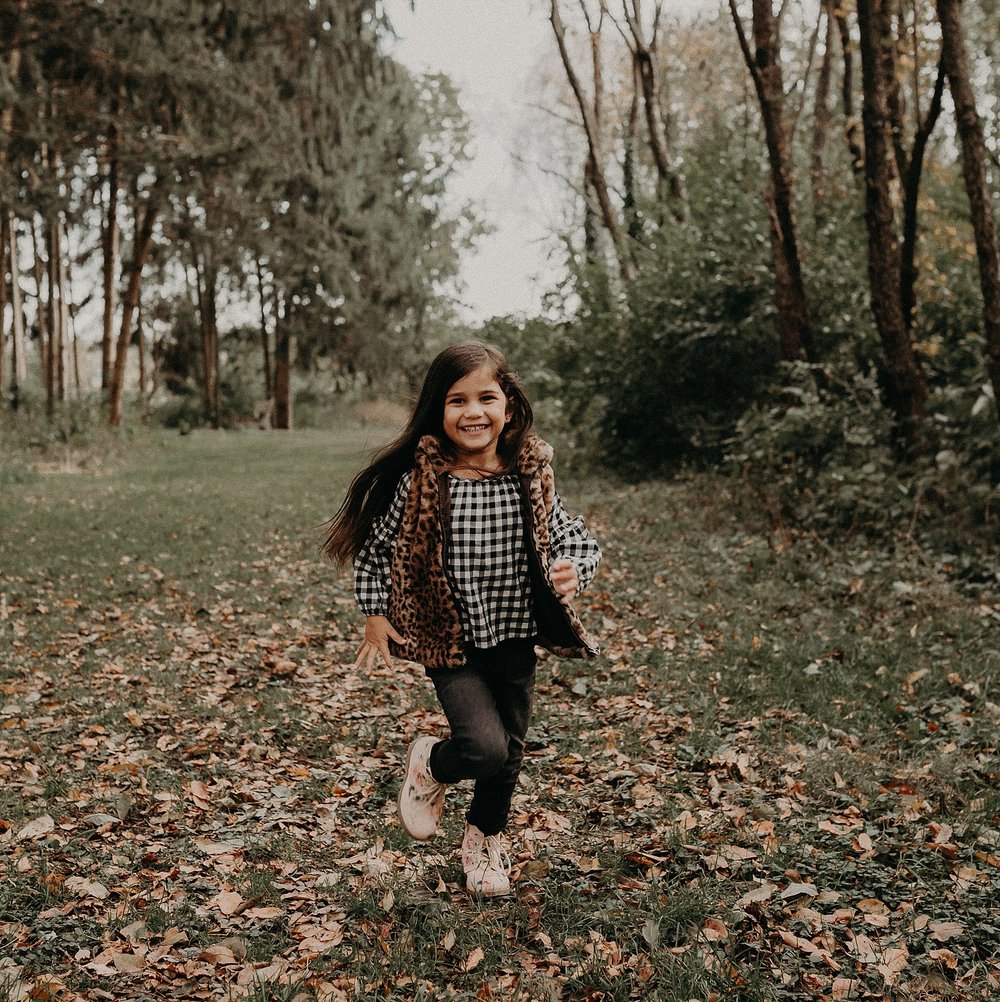 Thankfully the day of their session ended up being a super warm day after a whole streak of cold and miserable weather. We had so much fun with the kids, getting them to laugh and giggle. We explored the wooded area counting berries, finding caterpillars, and having daddy-daughter races. It was perfect. A perfect day. A perfect session. The perfect family.