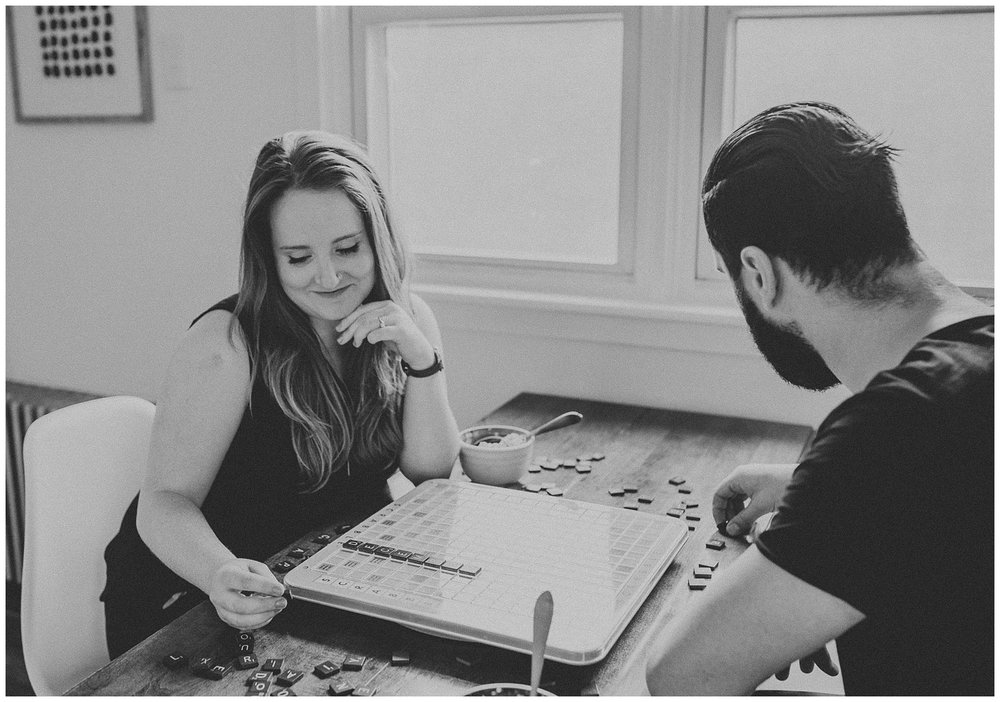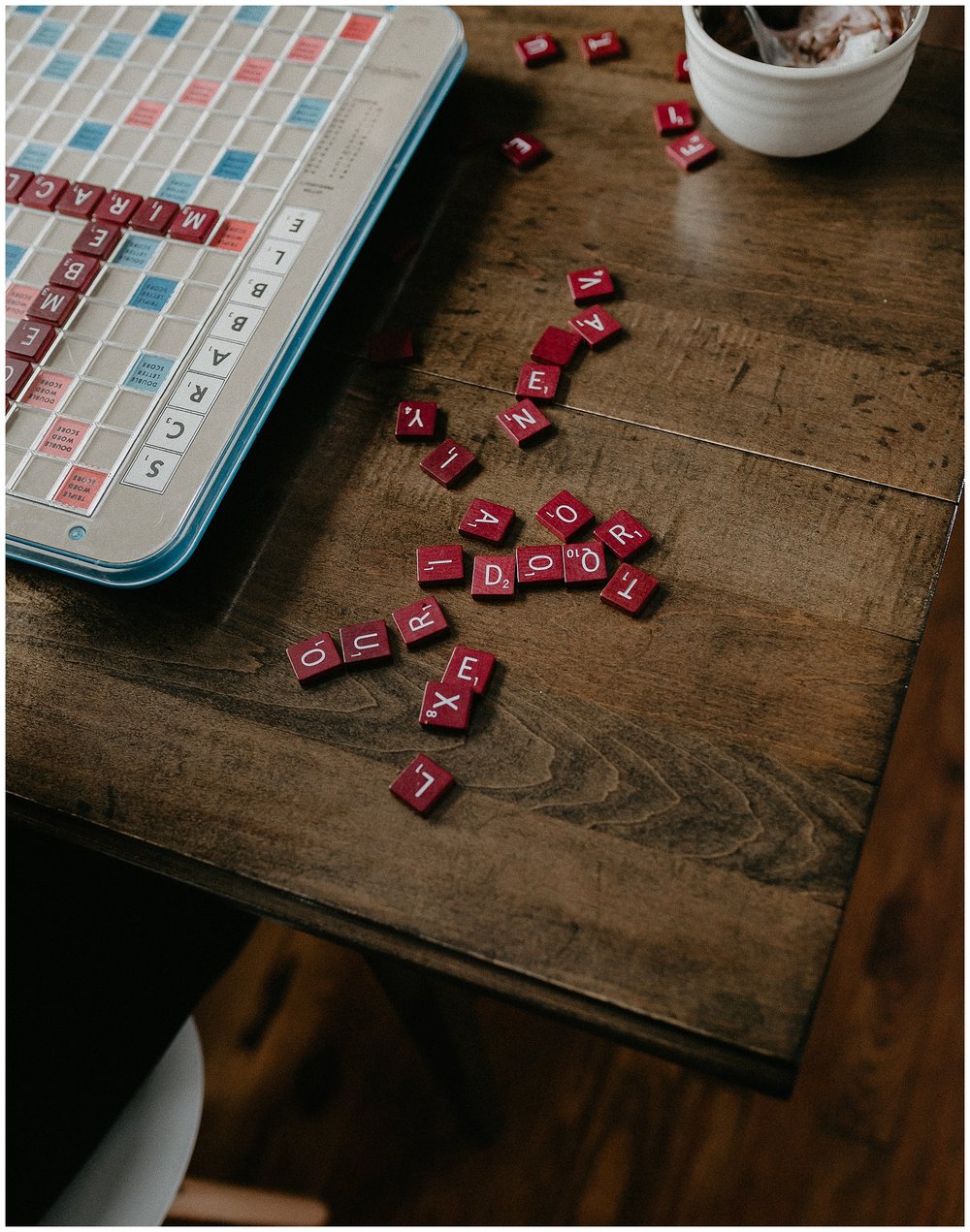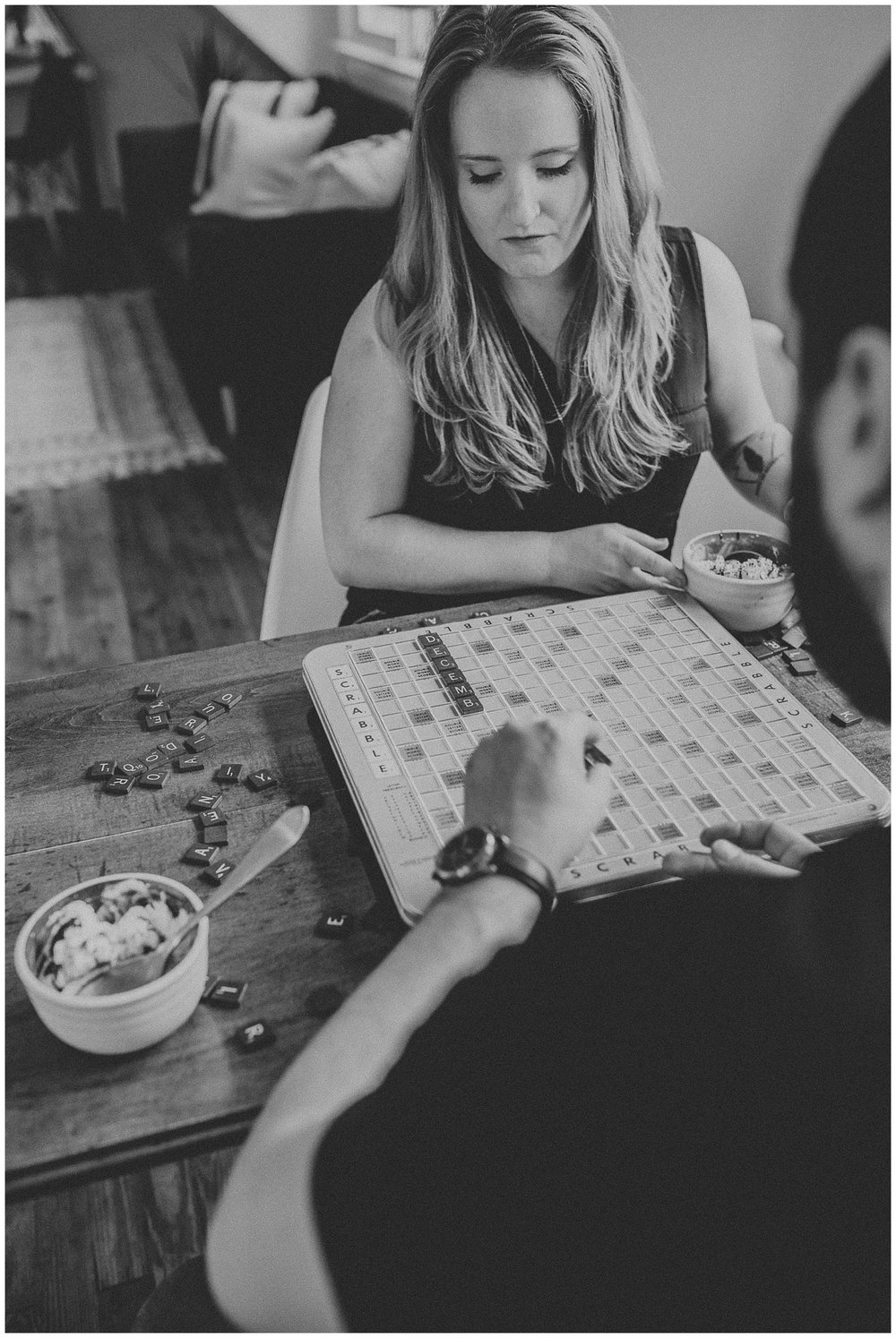 We had such a beautiful evening creating a cozy and warm atmosphere inside InDust’s beautiful AirBnB. We played the couples favorite artist in the background which allowed them to relax, karaoke, and sway to the music. After a while we decided it would be a good time to work out the big reveal! We brainstormed some ideas and decided Scrabble would be our route. Then it came time to pick the words! As J+G shared their love of ice-cream and whipped cream we had some fun creating the announcement.